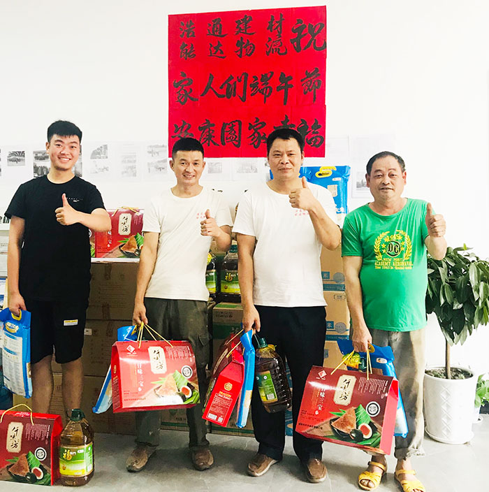 众所周知,端午节是中华名族重要的传统节日之一,自古以来便有划龙舟、食粽子、挂艾草等民风民俗。由此公司特意提前准备了口味丰富包装精美的粽子、皮蛋、咸鸭蛋、还有大米和食用油,凸显了公司对优秀文化的重视,承载了浩通建材、能达物流对大家庭对家人们细致入微的关怀,体现了公司温暖和谐的企业文化。