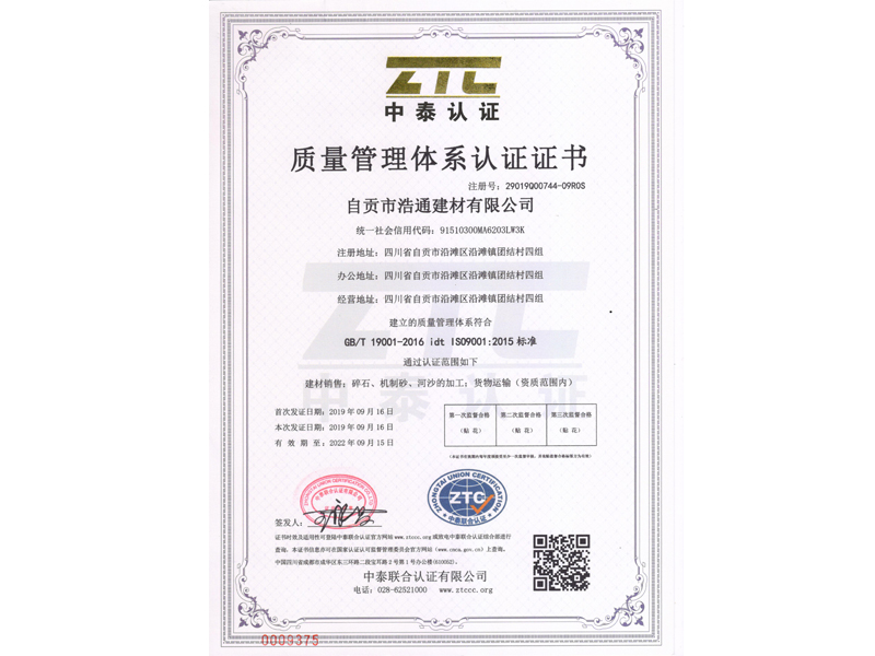 浩通建材9001认证