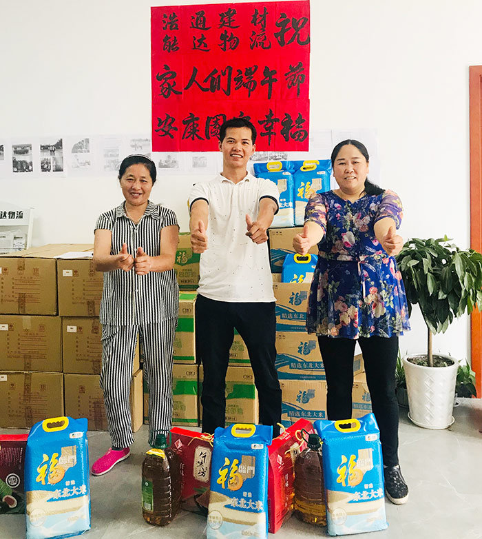 众所周知,端午节是中华名族重要的传统节日之一,自古以来便有划龙舟、食粽子、挂艾草等民风民俗。由此公司特意提前准备了口味丰富包装精美的粽子、皮蛋、咸鸭蛋、还有大米和食用油,凸显了公司对优秀文化的重视,承载了浩通建材、能达物流对大家庭对家人们细致入微的关怀,体现了公司温暖和谐的企业文化。
